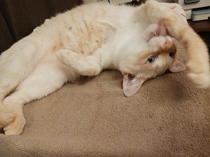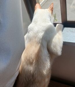 今までがうそのように、朝晩が涼しくて寒いくらいだ。ようやく長い夏が終わったんだなって全身の毛で感じるよ。今朝はボスが、僕が大好きなガーゼの肌掛け布団をしまうのだと言ったので、そのことでケンカをした。このガーゼで爪を研いだり、中に入って、透けた天井をめがけて跳びかかったりつついたりして遊ぶのが本当に楽しかったんだ。夏のお気に入りだった。半年以上もお別れだというと寂しいよ。