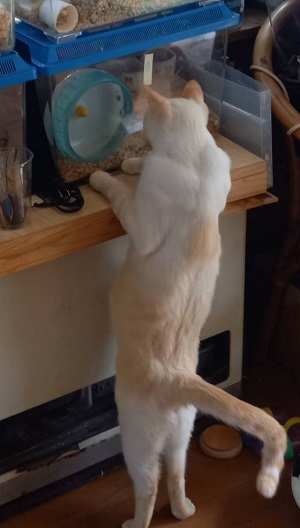 窓の外を見ていたらボスに「すごい筋肉や!!」と驚かれた。ピケ・ヘルナンデスは他の猫にはなかなかない、マッチョな体型らしい。僧帽筋と上腕三頭筋、三角筋や広背筋までほどよく発達。まるでアスリートのようだとボスにほめられた。