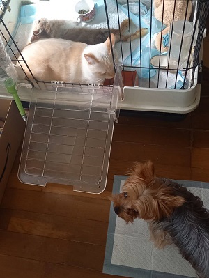 画像は、じいちゃんうさぎを見守る僕と犬。犬はびびって吠えるだけでなんもしないけど。おじいちゃんうさぎは僕が挨拶しようと顔をフンフンかぐと、嬉しそうに脚をふるよ。いつまで生きるかわからないけど、もう少し見守っていこうと思う。