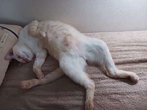 なんとなんと!一階の寝たきりじいちゃんうさぎはまだ生きてます。寝たきりになってから、なんだかんだ7カ月も経っているよ。寝たきりでも食欲がもりもりあって、水もゴクゴクと飲むから驚いちゃうね。